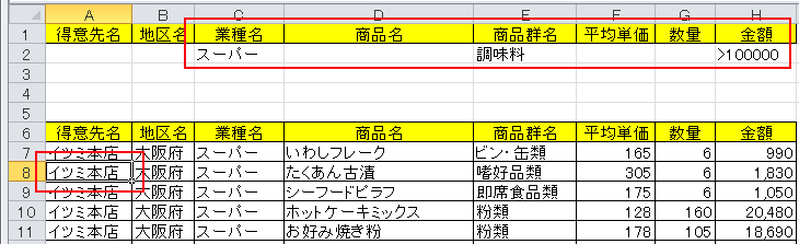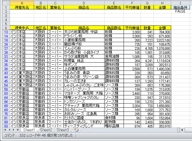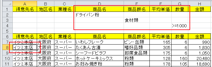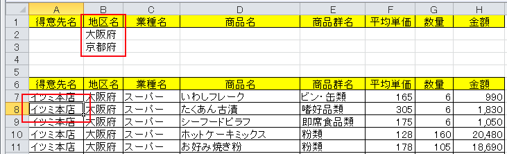 この意味は、「抽出結果を「基の表」の上に置き換えて表示す