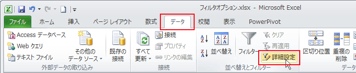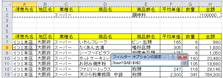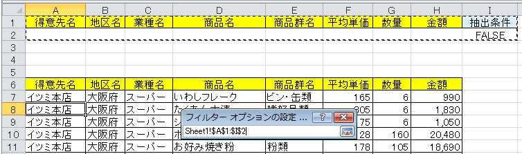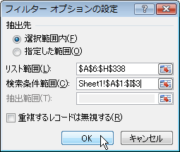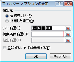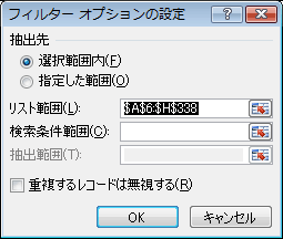 今灰色になっている「抽出範囲」の欄で、抽出結果の表示場所