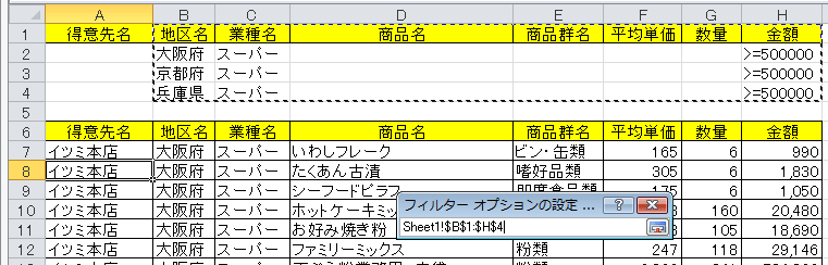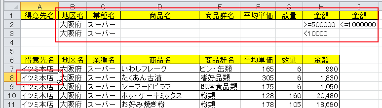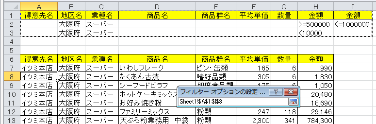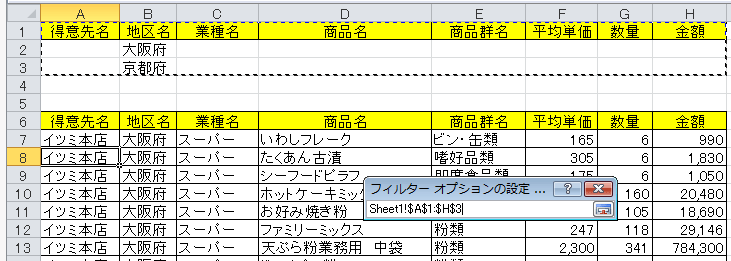 ・ここはその名の通り、抽出条件を設定した範囲を指定します。